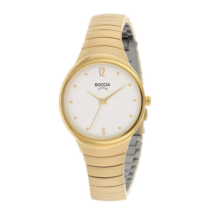 Die Boccia Damenuhr 3307-02 kombiniert klassisches Design mit modernem Material. Das Gehäuse und Armband aus Titan machen die Uhr besonders leicht, robust und antiallergisch. Das edel gestaltete Zifferblatt sorgt für eine klare Ablesbarkeit und unterstreicht den zeitlosen Charakter dieser Uhr. Eine elegante Begleiterin für Alltag und besondere Anlässe – in bewährter Boccia Titanium Qualität.